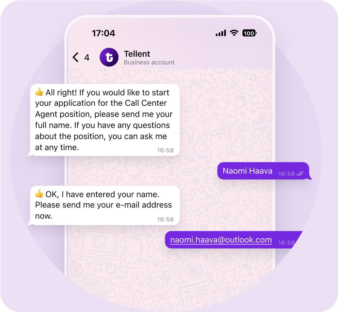 For candidates, WhatsApp feels familiar and approachable. They can respond at their convenience, without the formal tone of an e-mail or the pressure of a phone call. Quick responses and automatic updates make them feel heard and keep them involved in the process.