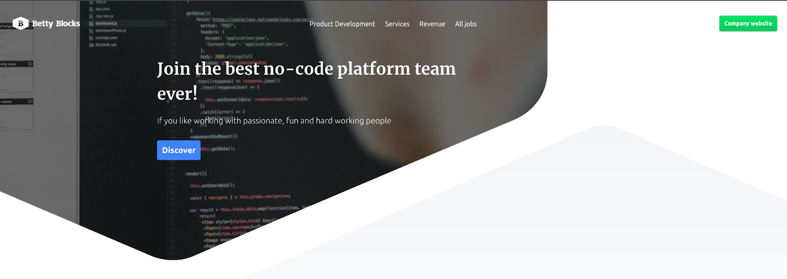 Betty Blocks is a European leading no-code app development platform created to build enterprise-grade applications. Their career page is an excellent example for companies, as it clearly states their mission, culture, and what they look for in their employees.
