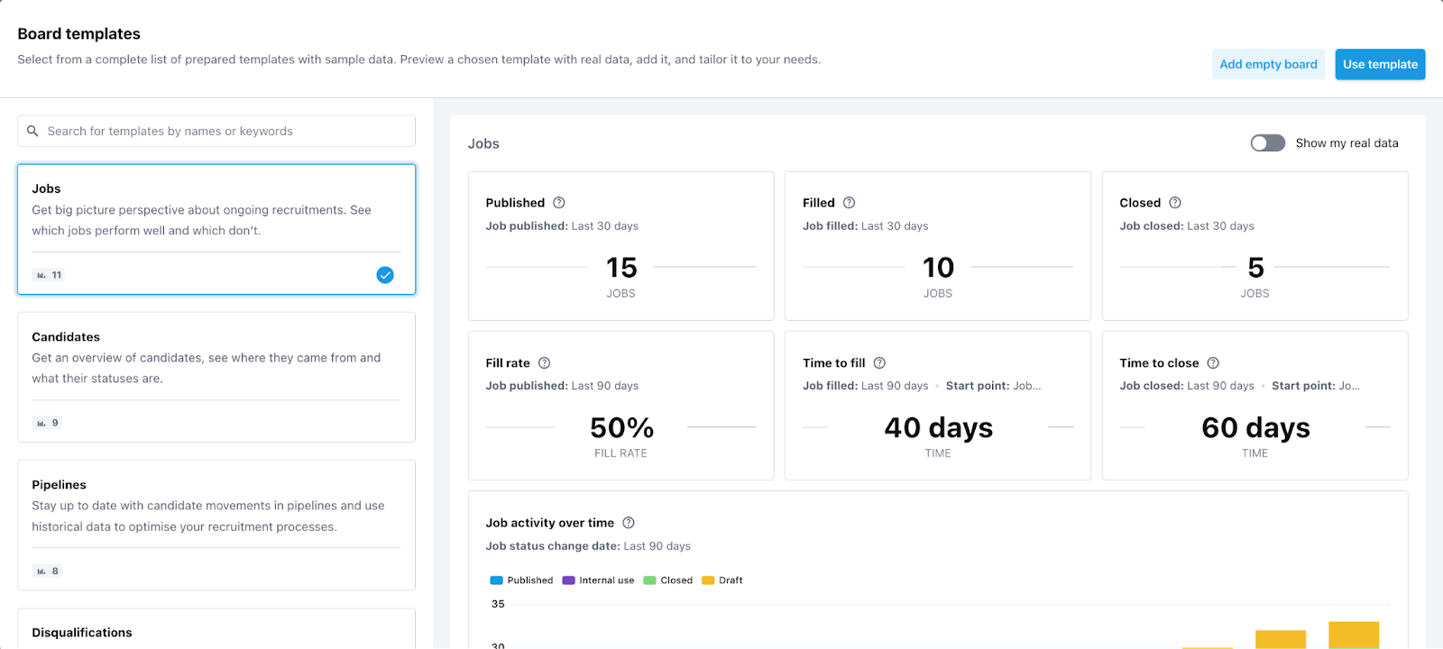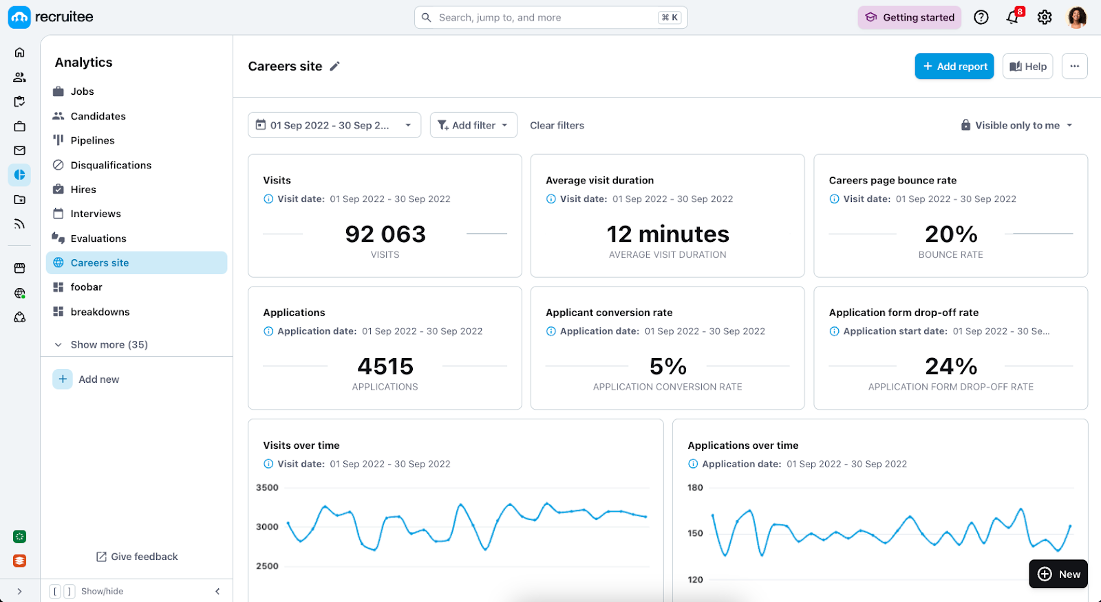 Tip: Recruitee by Tellent offers pre-built data dashboards that you can use to track KPIs for your recruitment marketing efforts. You can also create custom data boards that help to ensure that all relevant metrics are available to you at a glance.