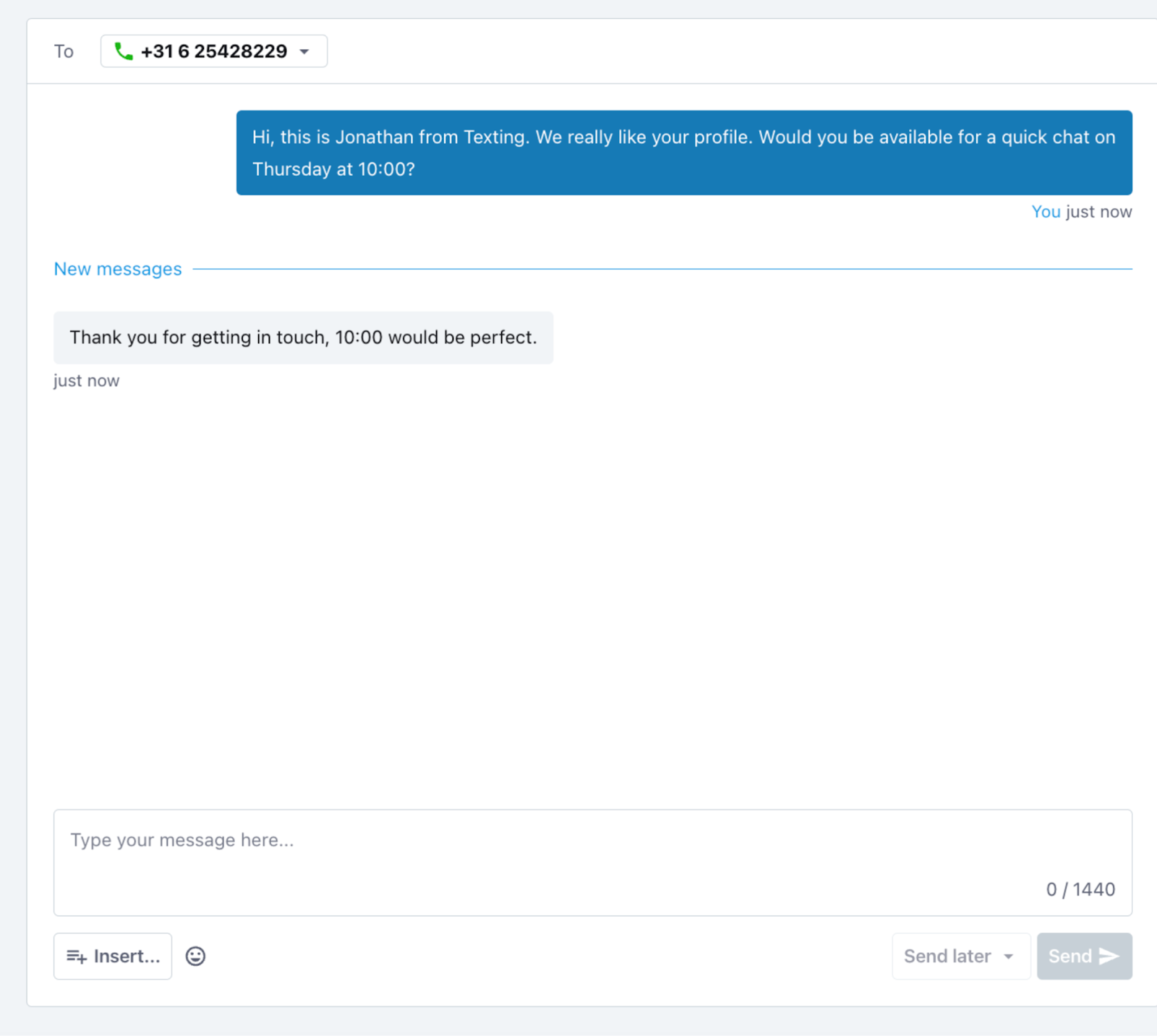 Tip: Recruitee by Tellent allows you to capture consent from candidates and message them directly through the application to centralize and streamline SMS communications.