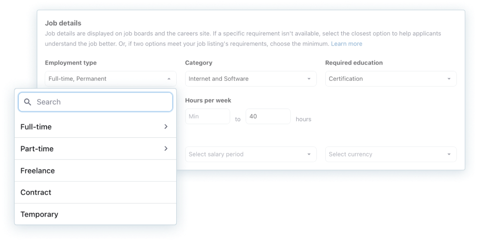 When posting a job, choose the type that best aligns with the role’s specific requirements to help candidates determine whether it matches their preferences and availability.