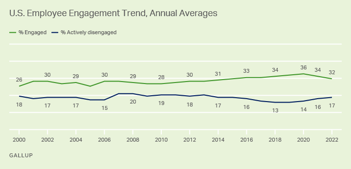 Gallup's latest survey discovered that employee engagement is on the decline for the second year in a row, while the number of actively disengaged workers — the socially acceptable way of saying "utterly miserable at work" — has grown by 1%.