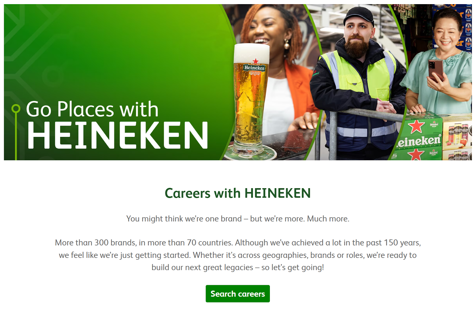 Heineken’s “Go Places” campaign positioned the employee journey as an adventure, celebrating diversity, creativity, and international opportunities across their 70+ markets.