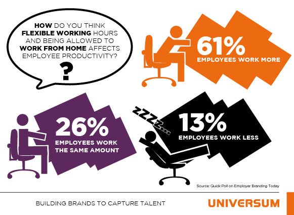 For example employees may be able to start work earlier or later in the day depending on their preference, with this then having an effect on what time they finish. Or perhaps they can spend two days working at home but must be in the office for the other three days of the week