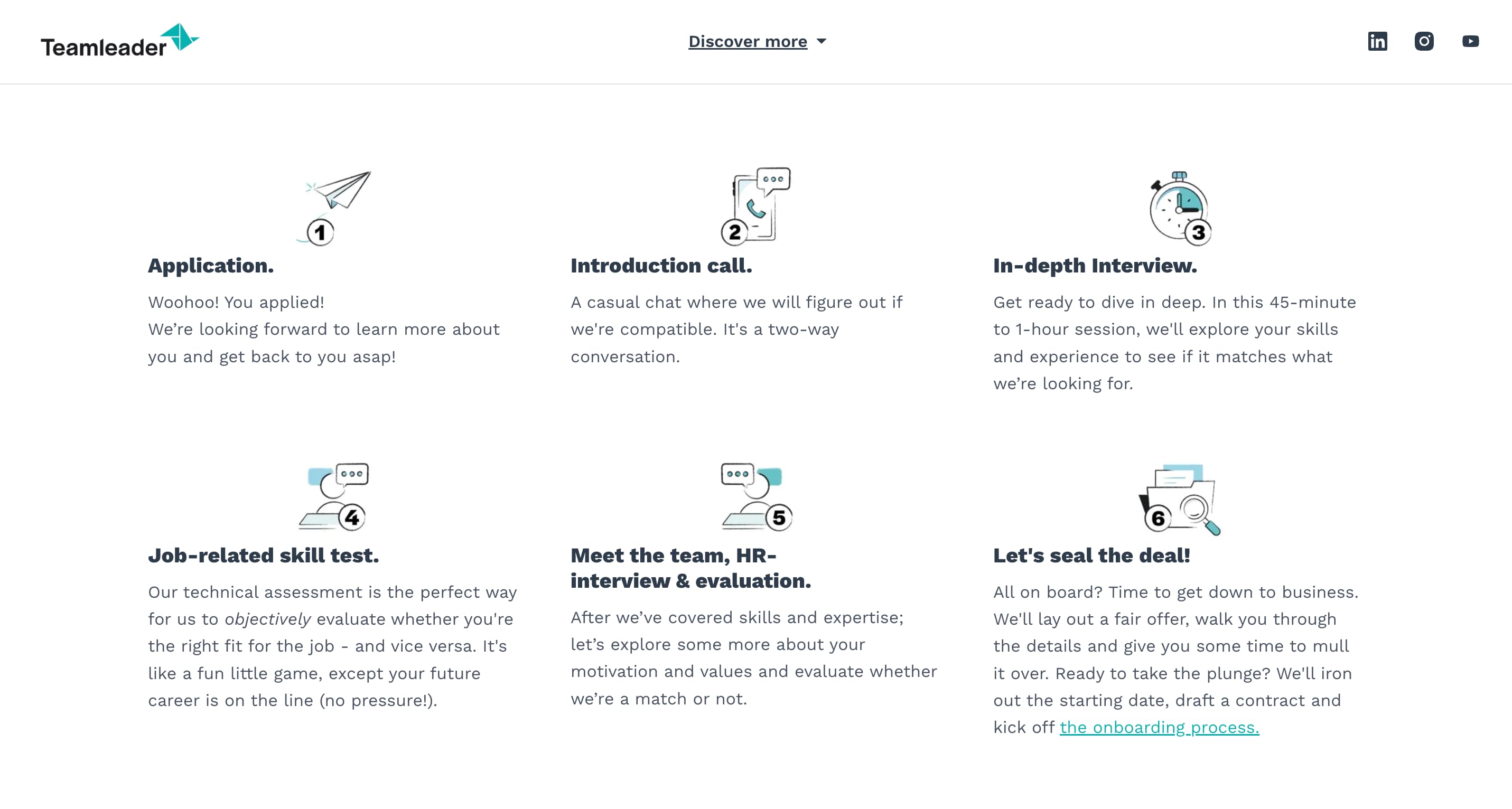 What really stands out is how Teamleader maps the entire application process visually. It’s a small detail, but one that makes a big difference: candidates know exactly what to expect at each step, which builds trust and reduces uncertainty. The result is a careers page that not only looks good but also makes applying feel transparent and straightforward.