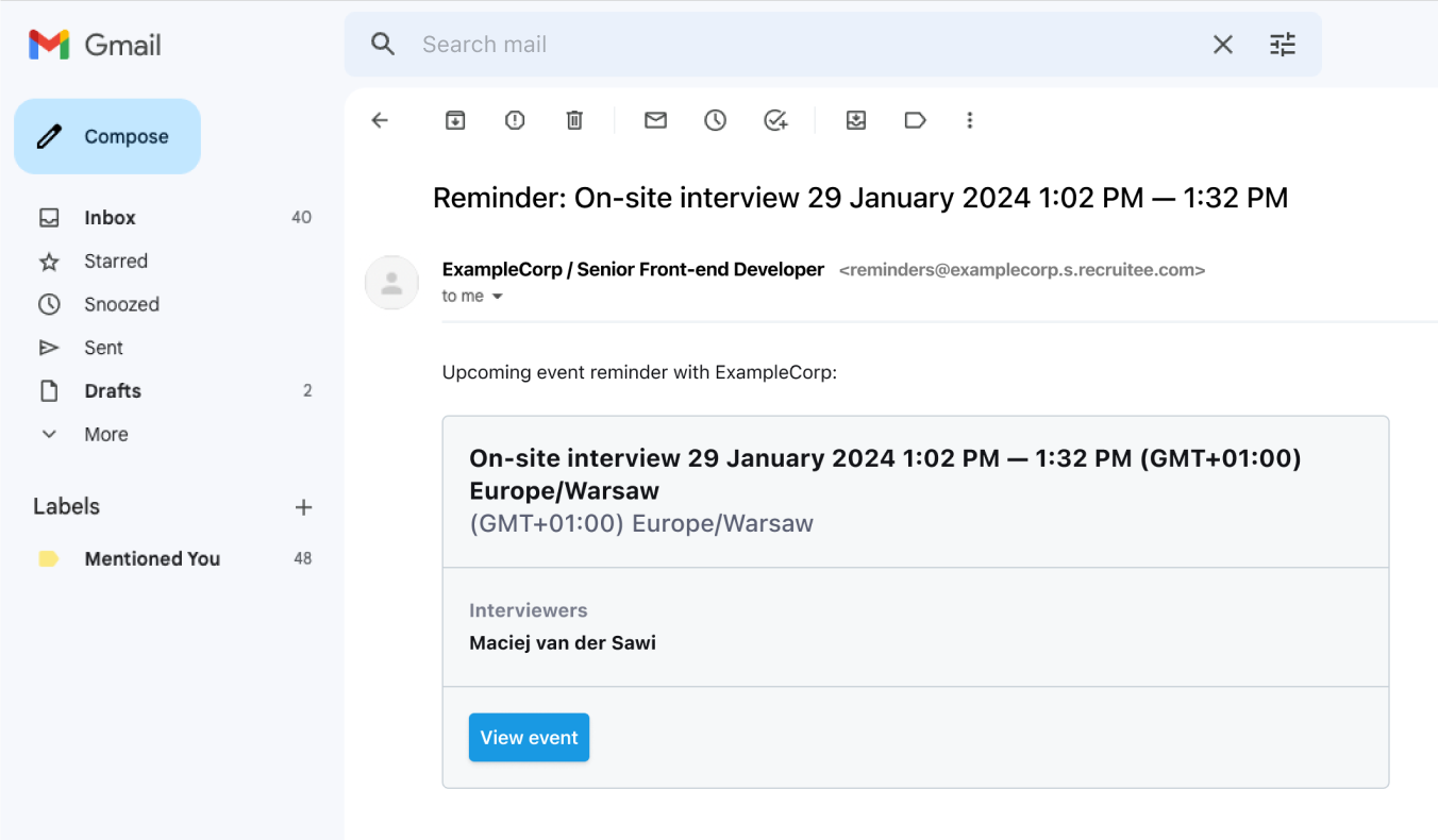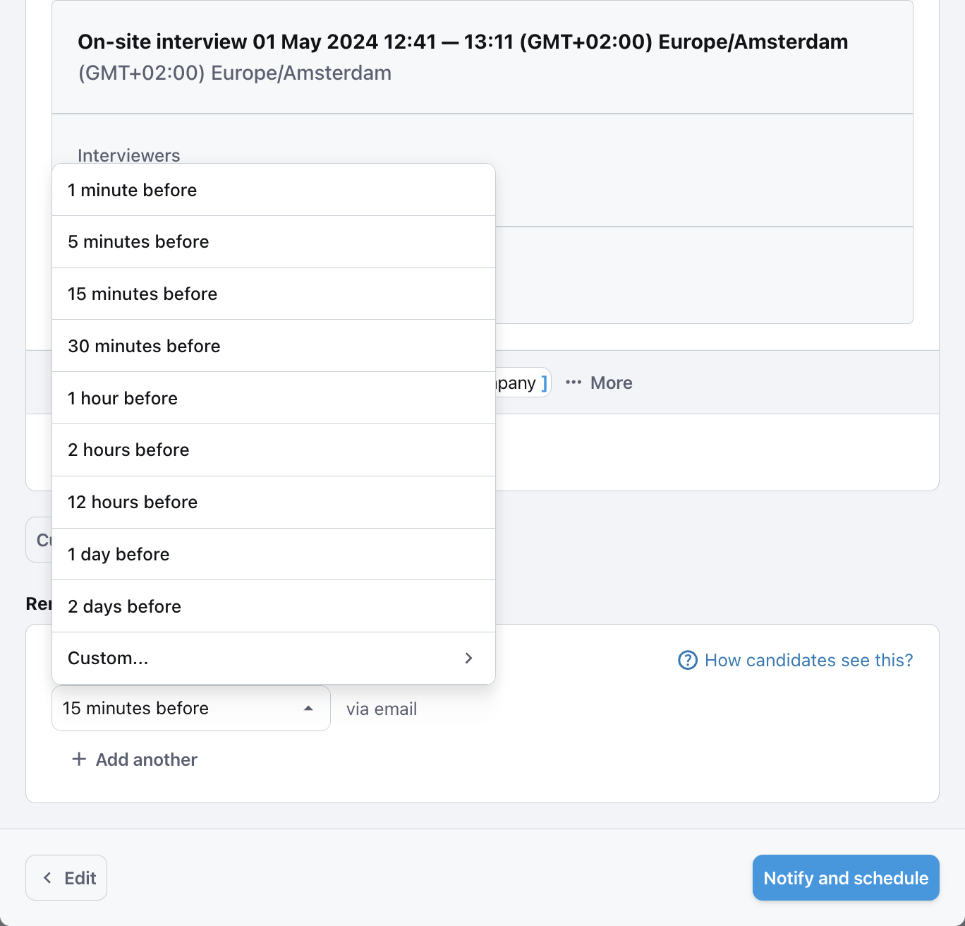 With Recruitee, you can streamline and automate scheduling your job trial days. For example, you can have your candidates choose a time slot that suits them best, based on your team members’ availability. You can also send automated invitation emails and reminders with calendar links to ensure that your candidates know where to do, and when.