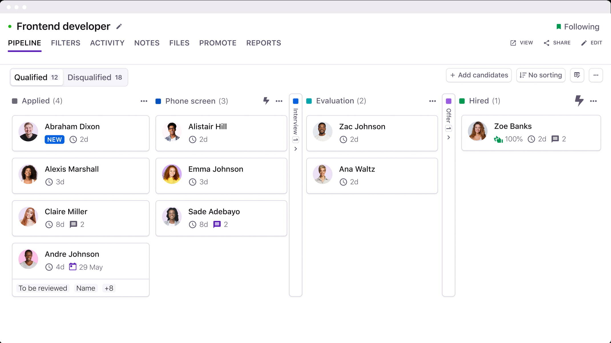 - Revisit your KPIs. Metrics like candidate satisfaction scores, Glassdoor ratings, or even offer acceptance rates can fluctuate over time. Use tools like Tellent Recruitee to keep an eye on these metrics and react quickly when you spot changes.