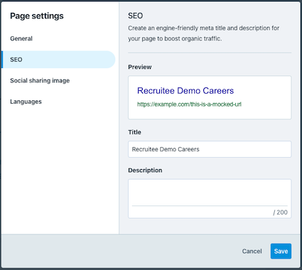 Tip: Recruitee by Tellent gives you the ability to easily specify your meta title and meta descriptions, allowing you to quickly add keywords to your job posts before going live.