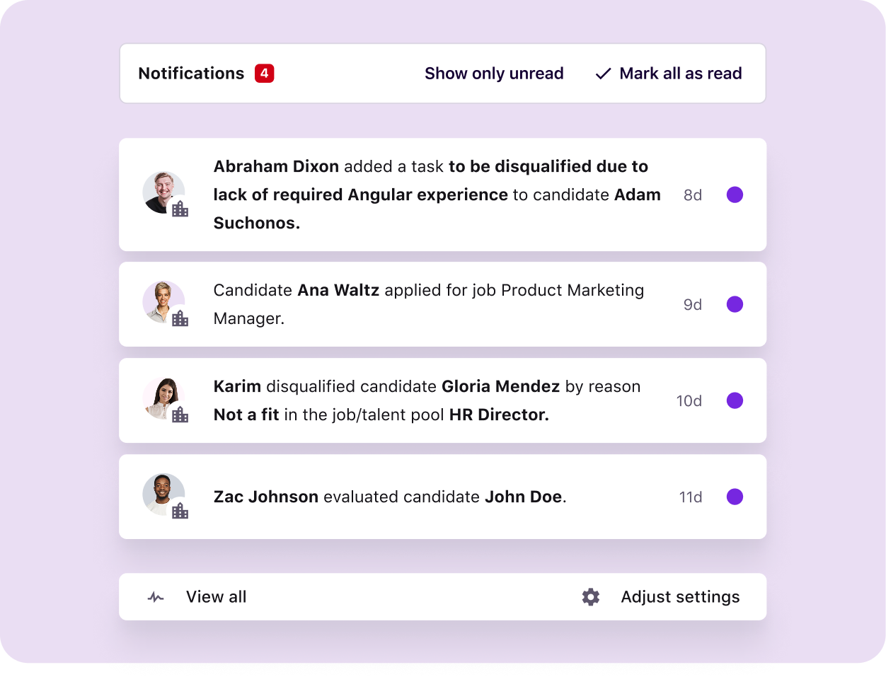 A robust ATS lets you create custom pipeline stages for each step of the hiring journey. For example, you might include a dedicated stage for a skills test, another for reviewing a work sample, and a final stage for structured interviews.