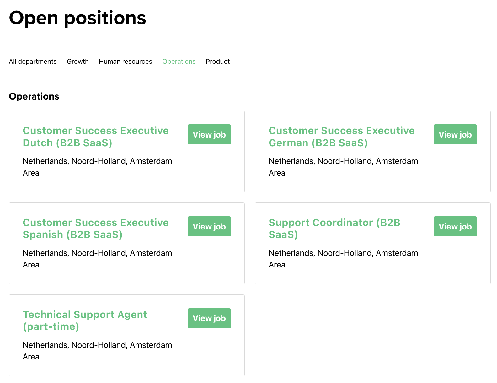 I’ve been working with Recruitee for years. First, when I worked as a Head of Marketing at 433 and later at Jobbird. For 2.5 years, I worked with Recruitee while I was the VP Growth at Virtuagym. After that, I introduced Recruitee to my previous company, myTomorrows, and now at Solutions 4 Delivery. That makes five companies where I have used Recruitee, and it helps me to promote the vacancies and saves me a lot of time.