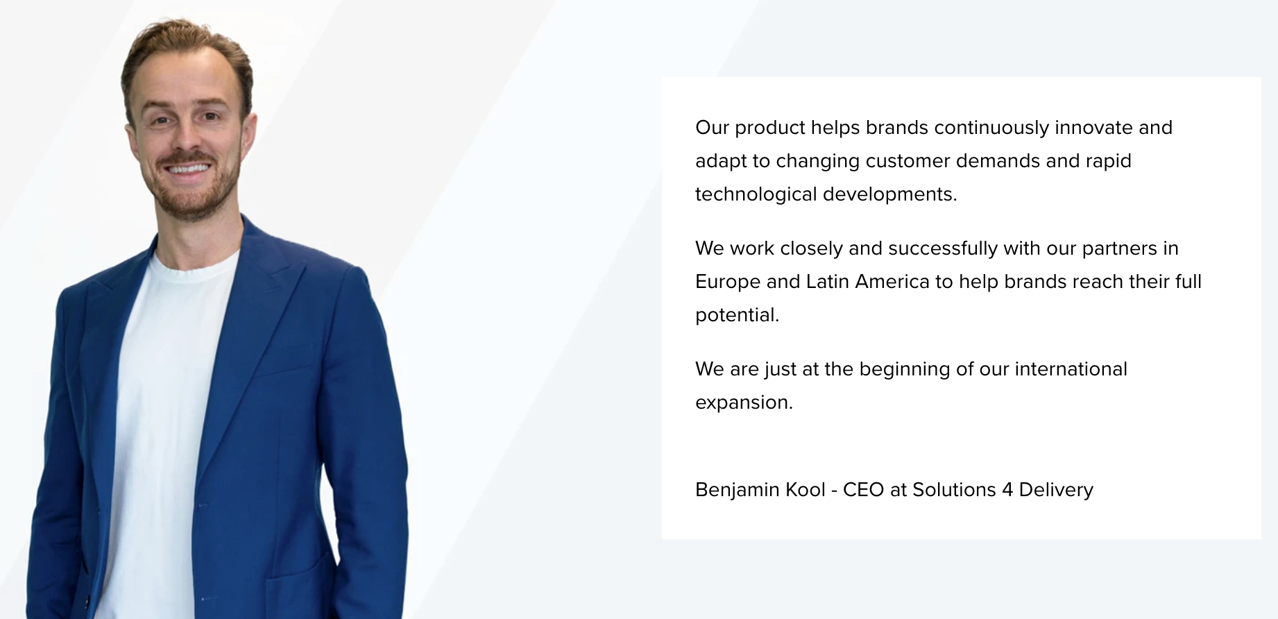 With just over 3 months at Solutions 4 Delivery under his belt, Daan has his sights set on continuous improvement. Next up? Hiring the next 10 people and making the first hires for the People team!