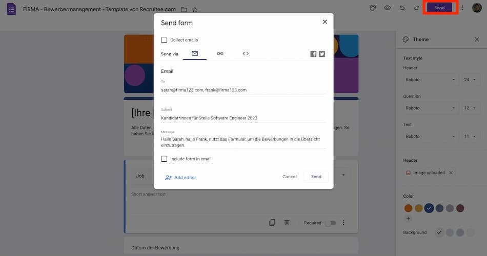 Wenn Sie mit dem Formular zufrieden sind, können Sie es einfach per Link oder E-Mail mit allen am Bewerbungsprozess beteiligten Personen teilen.