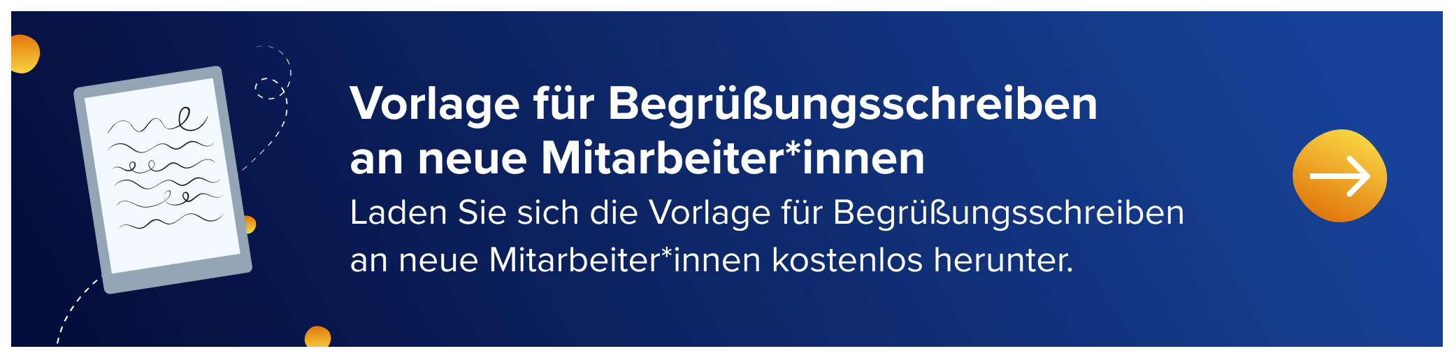 In den nächsten Abschnitten geben wir Ihnen hier einige Vorlagen für die Begrüßung neuer Mitarbeiter*innen zur Auswahl.