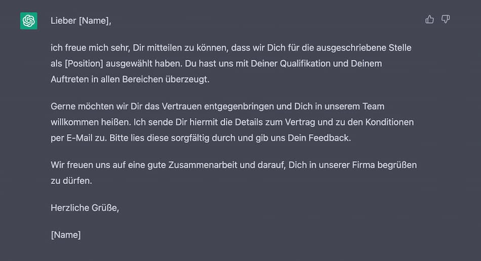 Wenn Sie ChatGPT noch mehr Informationen geben, fällt die Nachricht natürlich noch individueller aus. Aber den Feinschliff können Sie auch am Ende selber vornehmen.