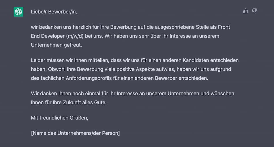 ChatGPT eine Absage formulieren lassen