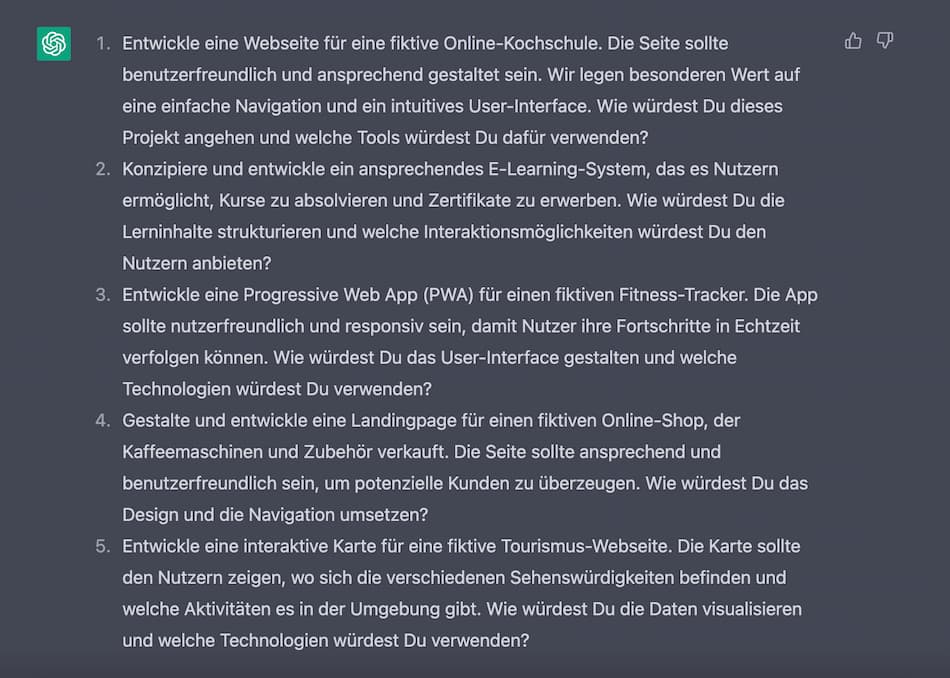 ChatGPT erstellt Ideen für Case Studies im Interviewprozess