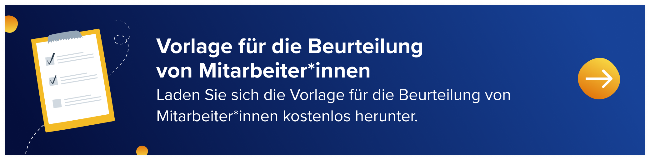 Am Ende des Jahres findet ein Mitarbeiter*innen-Beurteilungsgespräch statt. Dabei halten Führungskräfte fest, ob und in welchem Maß die Mitarbeiter*innen ihre vereinbarten Ziele, Aufgaben und Anforderungen erfüllt haben. Gleichzeitig wird das Verhalten der Angestellten unter die Lupe genommen und bewertet, wie sie sich gegenüber Vorgesetzten, Kolleg*innen und Kund*innen gegeben haben.