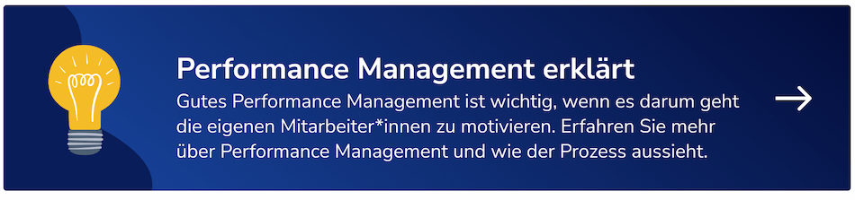 Das ist allerdings noch nicht alles! Das Performance Management ist wiederum Teil des Talent Managements. Im Rahmen der Leistungseinschätzung werden auch Potenzialanalysen durchgeführt, um Weiterentwicklungsmöglichkeiten für die Mitarbeiter*innen aufzuzeigen. Wie stellt sich der*die Mitarbeiter*in seine*ihre Zukunft im Unternehmen vor? Würde er*sie von einem Training profitieren? Ist er*sie bereit für eine Beförderung in die nächsthöhere Position? Auch diese Fragen sind ein wichtiger Teil des Mitarbeiter*innen-Gesprächs.