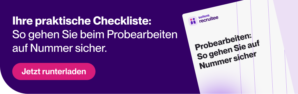 Dieser Artikel richtet sich an HR-Verantwortliche, Recruiter*innen und Führungskräfte, die das Probearbeiten als Instrument bei der Personalauswahl nutzen wollen. Wir zeigen Ihnen, worauf Sie achten müssen, um rechtlich auf der sicheren Seite zu sein und wie Sie das Probearbeiten für beide Seiten zu einer positiven Erfahrung machen.