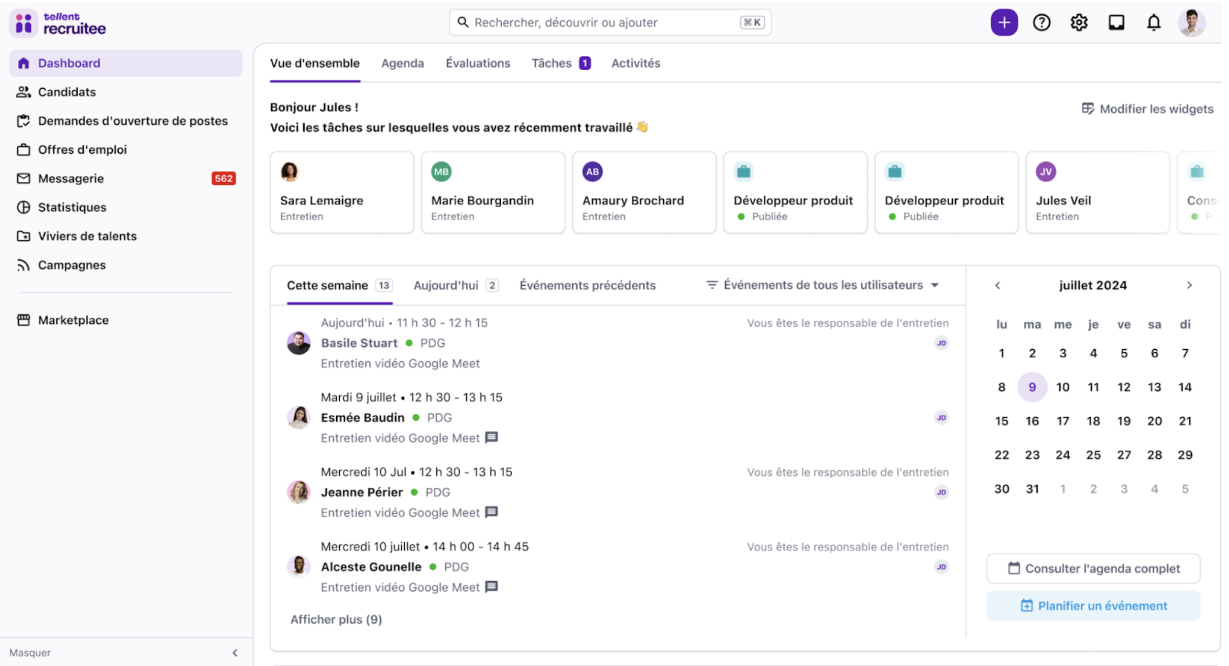 • Un tableau de bord : suivez tous les candidats, y compris ceux refusés
