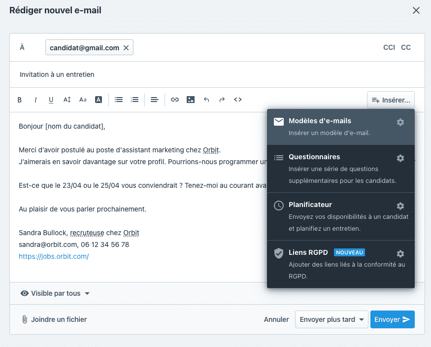 Personnaliser vos modèles d’e-mails de recrutement