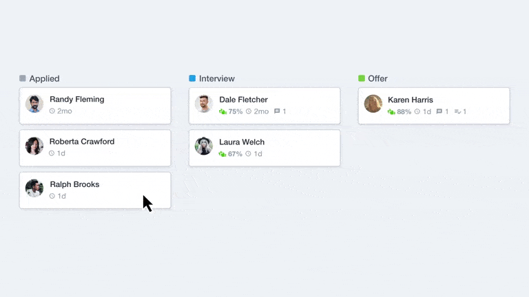 Il permet, non seulement de trier les candidatures, mais également de regrouper les informations recueillies lors des échanges ou des entretiens, sur un seul espace. Il devient facile de voir le statut des différentes candidatures reçues, en un clin d'œil.