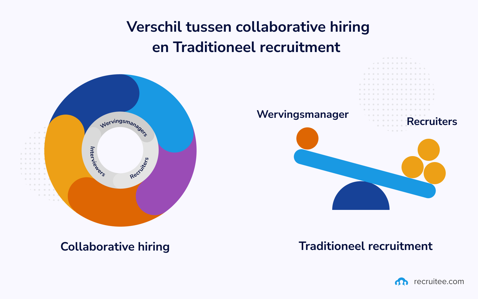 Zoals je misschien al opmerkte, brengt collaborative hiring een hoop voordelen met zich mee. Om volledig grip te krijgen op al deze voordelen, is het handig om terug te blikken naar de traditionele vorm van recruitment, en de verschillen te belichten.