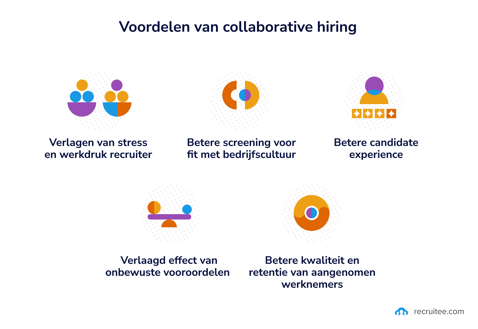 De lijst van voordelen van collaborative hiring is lang en varieert afhankelijk van de grootte van de organisatie, de specifieke industrie en de wervingsdoelen.